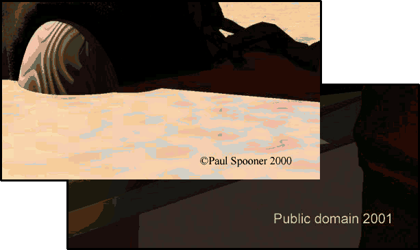 As I grew, perhaps in my mid-teens (I have kept no journal of my ideas progression, as the results seemed more important than the process at the time) I began to grow in knowledge of the specificities of these social implementations, namely the Patent and the Copyright (with their many other names denoting subtle shades of seperation). I also began to produce such works which could fall under the protection of these systems. I began to put copyright marks on some of the images that I made. This practice spurred me to work through a few implications. None of these systems assured me good return for “good ideas” which I formed. Rather they all, uniformly, worked to actively deny all people use and profit from the things I thought up, in hopes that I would grant such rights when satisfied by compensation. This sat with me uneasily, and I resolved, as much as was within my power, to produce materials that everyone could use and spread free from restrictions. I still believed that IP was “a real thing”, but it now resided in the “kind of a jerk move” region of my conciousness. However, I still assumed that I would, one day, produce a grand idea (either of fiction or practical genius) so profound that I could justify procurement and defense of “my rights” to the idea and its outcomes. Thus, concurrent with my experiments with copyrights, I also left my works un-marked, or even occasionally labeled them with public domain declarations.